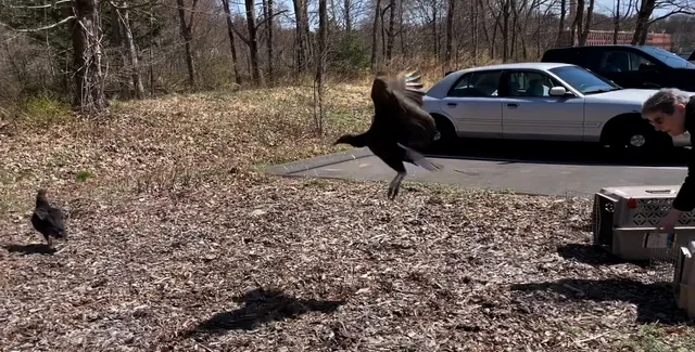 На відеозаписі, яким поділився центр, видно, як два стерв'ятники стрибають і відлітають одразу після того, як їх випустили на волю. Пізніше їх сфотографували разом сидячими на вершині дерева.