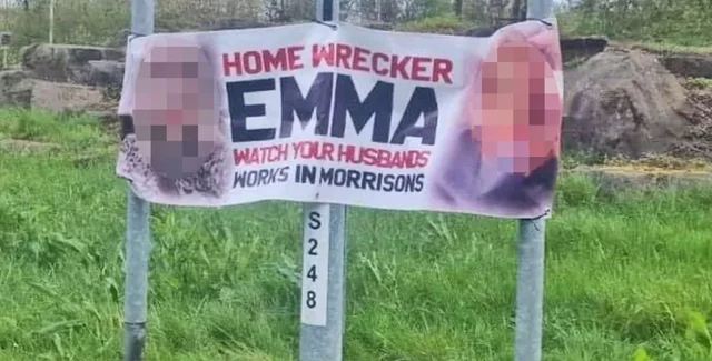 Працівниця супермаркету Morrisons на ім'я Емма потрапила на великий придорожній банер, де її назвали "руйнівницею сім'ї". Хтось розмістив там дві світлини жінки з попередженням "Слідкуйте за своїми чоловіками". Про це пише видання Daily Star.