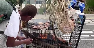 Незвичайне барбекю: чоловік перетворив візок із супермаркету на мангал (відео)