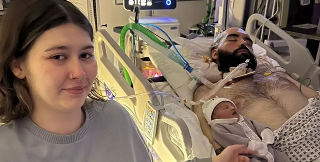 На зворушливих кадрах, що змусили багатьох людей плакати, новоспечений батько вперше та востаннє зустрічається зі своєю маленькою донькою безпосередньо перед тим, як його від'єднали від апарату життєзабезпечення.