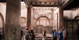 Археологічний парк Геркуланум, розташований поруч із кратером Везувію, недалеко від Неаполя, поховали під 16-метровим шаром попелу і бруду під час виверження Везувію 79 року нашої ери. Попри це, будинки та їхні інтер'єри залишилися недоторканими.
