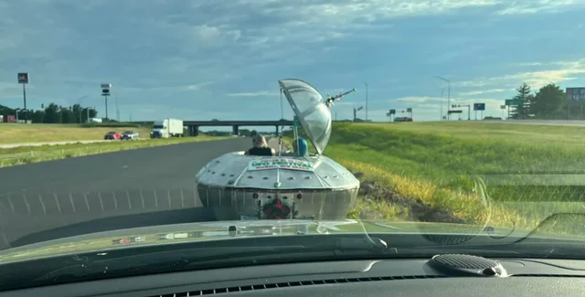 Як з’ясувалося, машина в формі НЛО прямувала через округ Кроуфорд на автомобільний фестиваль до Розуелла, штат Нью-Мексико. Дорожній патруль зупинив водія через порушення правил дорожнього руху та прострочений номерний знак штату Індіана, вручивши йому письмове попередження.