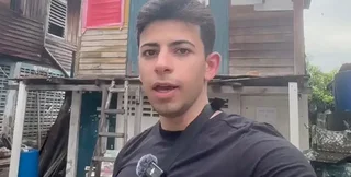 На опублікованих кадрах можна побачити, як мандрівник, який може похвалитися тисячами підписників на YouTube, підіймається сходами хиткої драбини, щоб дістатися до дерев'яного ґанку.