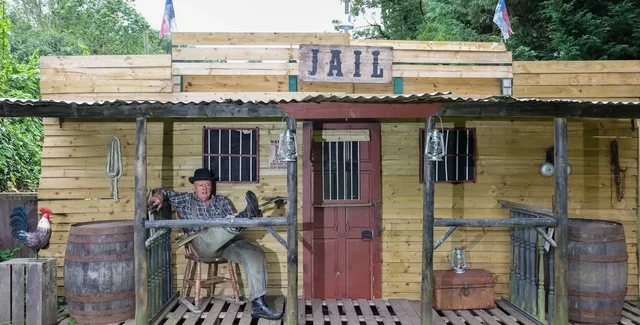 Кухня чоловіка рясніє фарбами, демонструючи вінтажні шафи на тлі класичної чорно-білої підлоги в шаховому порядку, а сам він пишається тим, що володіє 10 холодильниками тієї епохи, хоча для інтер'єру підійшов тільки один. Однак британець не захотів зупинятися на досягнутому і після трьох років наполегливої праці та скромних інвестицій у 500 фунтів стерлінгів він перетворив свій сад на місто з вестерну. Тепер він може похвалитися заднім двором з офісом шерифа, самогонним апаратом, в'язницею, банком, торговим пунктом, перукарнею, кузнею і навіть гарматою.