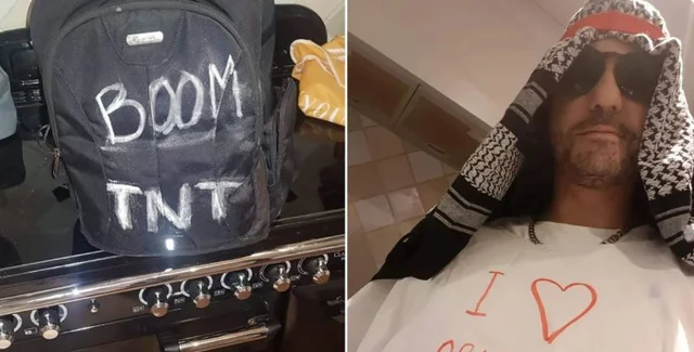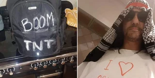 Британець також опублікував на своїй сторінці у Facebook фото чорного рюкзака з написами "бум".