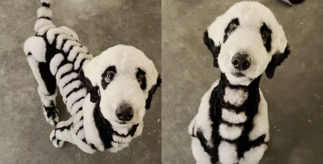 Цього року чоловік вирішив присвятити новий образ Гелловіну. Він зробив своїй 3-річному пуделю Едеї нову стрижку і макіяж, які нагадують скелет.