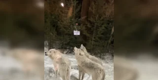 Вовча зграя з десятка особин завітала в гості до пари американців, які орендували хатинку в Онтаріо в Канаді. Водночас чоловік настільки осмілів, що відчинив двері та вийшов прямо до тварин.