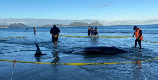 Журналісти з посиланням на Департамент охорони природи повідомили, що більшість з них були зняті з мілини й попливли в море, але троє дорослих і одне дитинча загинули. Інших вдалось врятувати, піднявши їх на шпунтах.