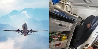 На знімку видно, як візок із напоями рухається проходом, а поруч з автором у кріслі сидить людина, вкрита ковдрою. Її силует і навушники створили моторошну ілюзію, що нагадує істоту з культового фільму "Інопланетянин".