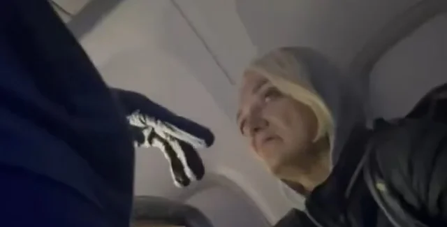 Пасажири зняли на відео безквиткову пасажирку після того, як її спіймали бортпровідники. Далі стала агресивною і кричала на персонал, який намагався її допитати.