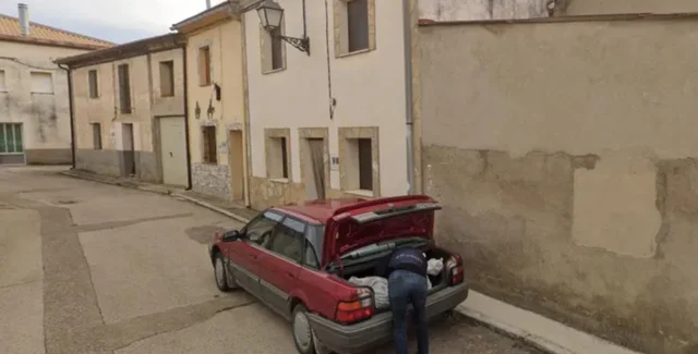 На зображенні, зробленому випадково, зображений чоловік, який завантажує білий мішок у багажник червоного автомобіля Rover на вулиці Калле-дель-Норте в місті Тахуеко.