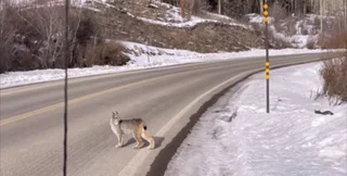 На кадрах, які були зняті біля Ред Маунтінг Пас, можна помітити, як рись обережно виходить на дорогу та оглядається. Потім вона поглядом шукає малечу, яка за кілька секунд опиняється в об'єктиві відео.