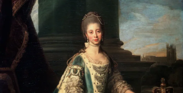 Королева Шарлотта була дружиною британського короля Георга ІІІ, мала значну колекцію суконь та предметів особистого користування. До сьогодні збереглося лише одне відоме вбрання датоване 1805 роком.