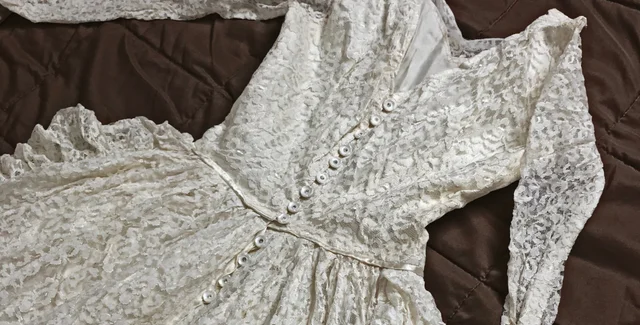 У ролику дівчина демонструє сукню з довгими мереживними рукавами й незвичним вирізом, яку бабуся одягала лише одного разу — в день свого весілля 64 роки тому.