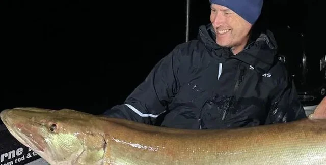 Рибалці, на рахунку якого вже 39 рекордів, вдалося дістати довгу і м'язисту здобич з озера у Міннесоті (США). В цьому йому допомагав ще один рекордсмен — Нолан Шпренгелер.