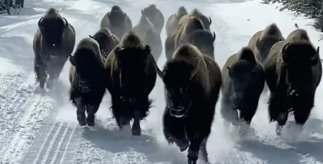 Оскільки перший національний парк США відкритий для відвідувачів цілий рік, для цих бізонів, які мігрують, немає нічого незвичайного в тому, щоб виходити на дороги або снігохідні стежки перед транспортними засобами. Також доглядачі національного парку попереджають, що, катаючись на снігоході, цілком можна врізатися в бізона. І, скоріше за все, це погано закінчиться для снігохода.