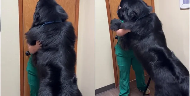 На опублікованих кадрах можна побачити, як Кузко проявляє вдячність до своєї ветеринарки, обіймаючи, обхопивши передніми лапами.