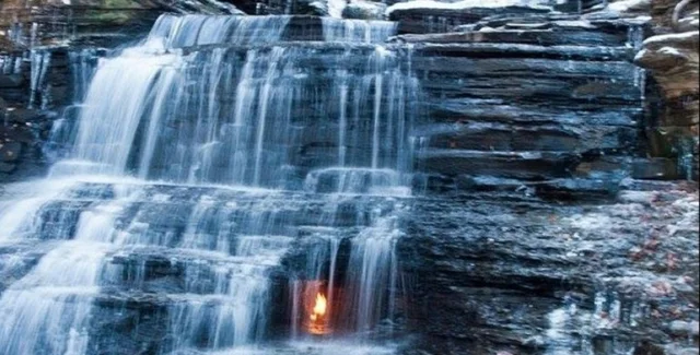 Одним із таких місць став водоспад Вічного вогню в штаті Нью-Йорк, США. Мандрівник Майк Лафран випадково натрапив на цей унікальний об'єкт, де в невеликому гроті під водоспадом горить вогонь. Він зафіксував це рідкісне явище на камеру.