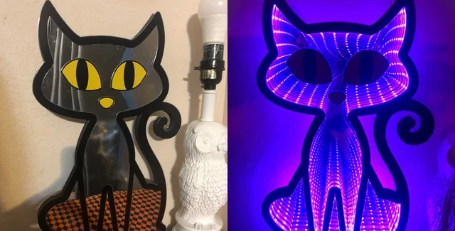 40-річний чоловік швидко привернув увагу глядачів на платформі. У пості, де було представлено зображення дзеркала у формі кішки, виявився сюрприз: це було не просто дзеркало, а предмет, що світився, з яскравими неоновими ефектами.