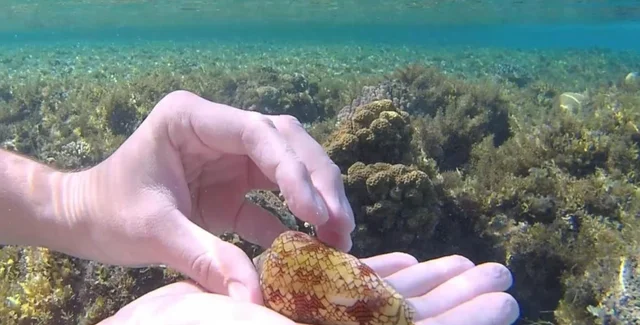 Френк стверджує, що раніше ніколи не чув про конусних равликів, але хотів дізнатися в інтернеті про можливу небезпеку. Він зробив скриншот відео з GoPro, яке зняв під водою.