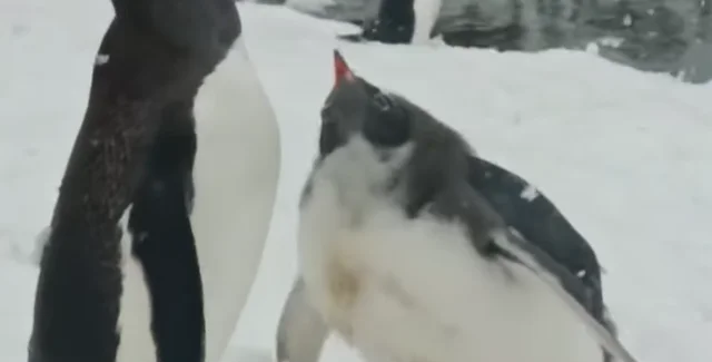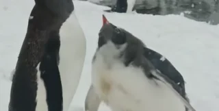 На відео можна помітити, як інші пінгвіни намагаються прогнати білих "нахаб". Однак птахи постійно повертаються.