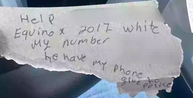 У туалеті на заправці жінці передали записку з благанням про допомогу. Авторка стверджувала, що її утримують проти волі й позбавили зв'язку із зовнішнім світом.