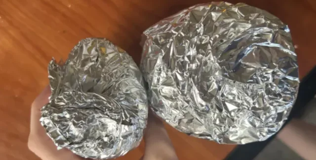 Користувачка платформи опублікувала знімок, де зображено дві страви, загорнуті у фольгу. Одна з них (для хлопця) виглядає значно більшою, хоча обидві мали бути абсолютно однаковими за наповненням.