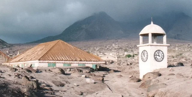 Плімут, колись жвава столиця карибського острова Монтсеррат, виявився похований під метрами вулканічного попелу після двох руйнівних вивержень вулкана Суфрієр-Гіллз у 1995 і 1997 роках.
