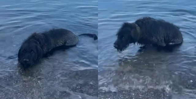 Однорічний пес став зіркою, намагаючись зрозуміти, чому не можна лягти на воду