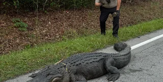 У Північній Кароліні поліцейські "заарештували" великого алігатора, який зупинив рух автівок, бо приймав сонячні ванни просто посеред дороги.