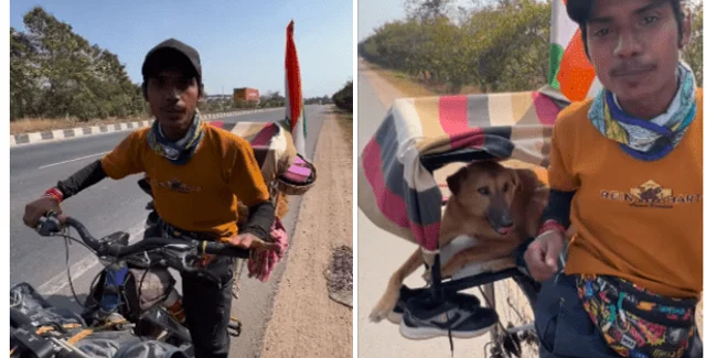 Мешканець Індії Сону зі штату Біхур та його собака Чарлі стали зірками Instagram, коли їх випадково зафільмували під час поїздки однією з доріг. Під час зупинки чоловік розповів про свою подорож, а користувачі тепло відреагували на появу велосипедиста та його чотирилапого друга, пише NDTV.