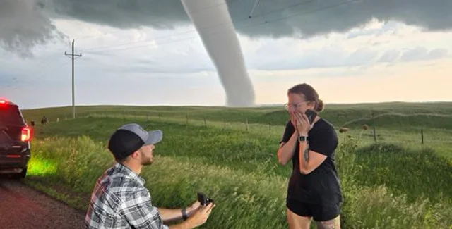 Мешканець США та його кохана захоплювалися відстежуванням торнадо по США, але під спостереження за одним з явищ чоловік освідчився коханій. Вона сказала "так", а в коментарях розгорілося жваве обговорення фото, на якому зображено цей момент у житті парі.