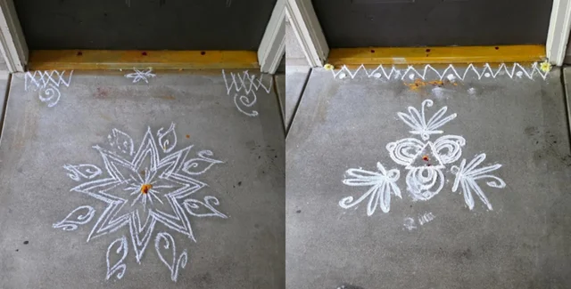 Коментатори швидко пояснили: перед ними — колам. Це традиційне мистецтво з Південної Індії, зокрема зі штату Тамілнад. Його створюють рисовою пудрою або крейдою, починаючи з точок (пуллі), з'єднаних у геометричні візерунки. Ці малюнки символізують позитив, удачу та красу, а також виконують роль щоденного духовного ритуалу.