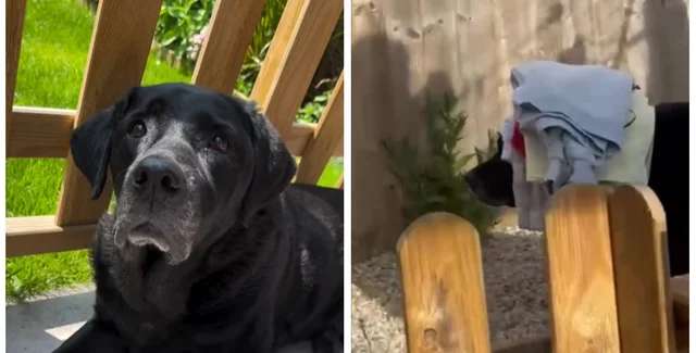 Відео з чорним лабрадором стало вірусним — воно набрало майже 6 млн переглядів, понад 569 тис. вподобайок і понад 600 коментарів. Коротке відео показує, як Кейлі збирає сухий одяг із сушарки на вулиці, складає його та обережно кладе на голову свого собаки. Едді, спокійний і зібраний, навіть не моргає — терпляче тримає прання на голові, ніби він схожий на кошик.