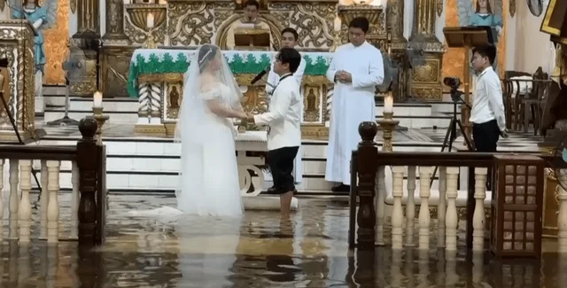 У вівторок, 22 липня, церква Барасоайн у місті Малолос, провінція Булакан, виявилася затопленою через проливні мусонні дощі, посилені тайфуном Віпа. Однак пара, яка перебувала разом уже десять років, не дозволила стихії зірвати плани на найважливіший день у їхньому житті.