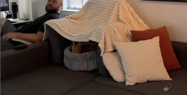 Вірусне відео за участю кота на прізвисько Багз і його турботливого господаря розтопило серця тисяч користувачів Instagram. На кадрах, опублікованих користувачем @lauren_syndi, рудий вихованець затишно влаштувався в імпровізованій "фортеці" на дивані.