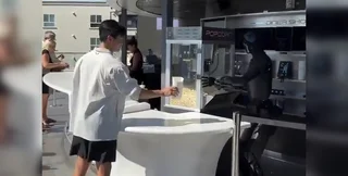 Один чоловік під час відвідин розважальної локації вирішив підколоти робота-продавця, який роздавав відвідувачам попкорн. Машина вирішила відповісти "люб'язністю" на дії туриста, чим розвеселила мережу.