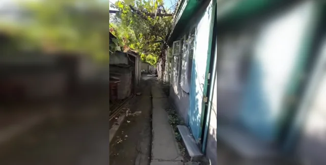 На відео можна побачити "екскурсію" квартирою. Оператор показує двір, кухню, кімнату та туалет з подертими шпалерами, потрісканими стелями та старими меблями.