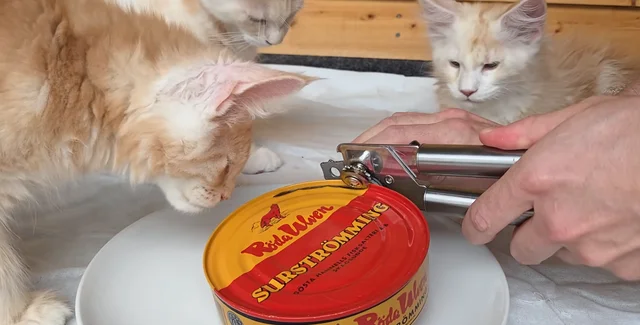 Шведський блогер Альбін, який займається розведенням котів породи мейн-кун, вирішив потішити своїх пухнастих сюрстрьомінгом. Користувачі мережі були вражені тим, що котики без огиди та рефлексів до стійкого запаху страви.