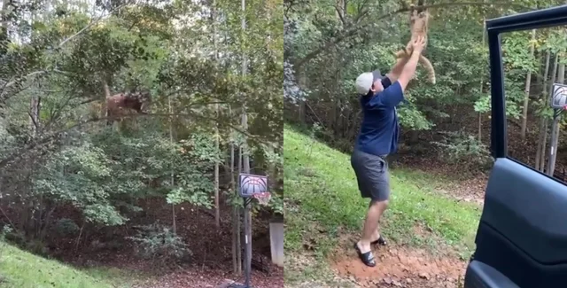 Пара зі США помітила на дереві пухнастого, який туди видерся і застряг на гілці. Коли чоловік вирішив кинутися на допомогу котику, стало ясно — падіння з гілки попри допомогу не уникнути.