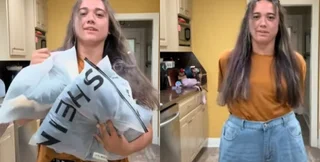 На кадрах видно, як джинси звисають навколо її ніг через надмірну ширину. Спочатку вона припустила, що могла випадково замовити неправильний розмір.