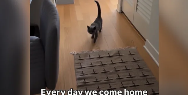 Вона стверджує, що подібний ритуал зустрічей кошеня неодмінно повторює кожного дня.