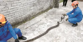 Рятувальники акуратно витягли триметрову змію вагою 13 кілограмів | Фото: Express