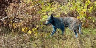 Безпритульні собаки, що живуть у Чорнобильській зоні відчуження, ймовірно, отримали новий колір хутра, коли копирсалися у вмісті старого перекинутого мобільного туалету. У переносних нужниках якраз використовують яскраво-синій дезодоратор.