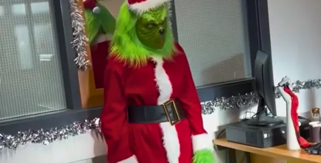 Кумедне відео стало вірусним — набрало понад 100 тис. переглядів у соцмережах. На кадрах видно, як "Грінч" штовхає різдвяну ялинку, дратує рецепціоністку, ковзає перилами сходів, розкидає книжки в бібліотеці та буквально зводить студентів з розуму.