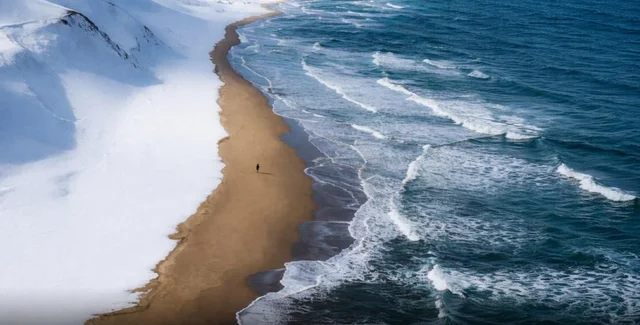 Сніг, пісок і океан: фотограф показав, як виглядає найнезвичніший пляж узимку (фото, відео)