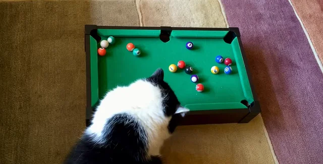 Чотирилапий профі: кіт показав майстер-клас з гри на мінібільярдному столі (відео)