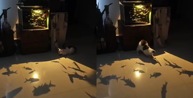 Власник одного чотирилапого котика показав, як його підопічний розглядав тіні риб від освітлення акваріуму. Користувачі з захопленням та сміхом оцінили навички пухнастому на полюванні.