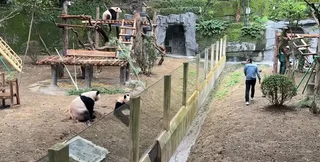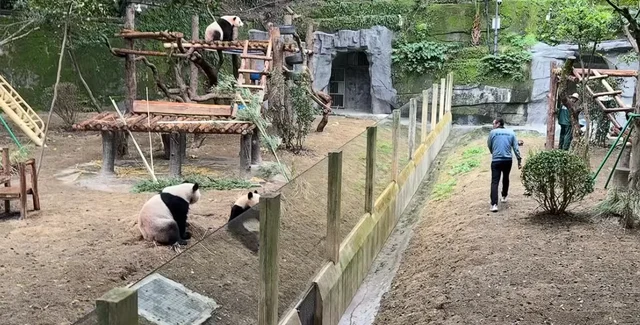 На кадрах видно, як працівник центру проходить мимо зони відпочинку панд і махає їм рукою. За мить чоловік обертається та йде вздовж паркану, а далі одна з панд вирішила закосплеїти ветеринара.