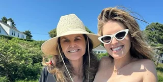 34-річна вагітна письменниця позувала серед високої трави зі своєю мамою. Кетрін була одягнена в синій топ без рукавів і бретелей, а також у високу білу спідницю, що прикриває її кругленький живіт. "Ми дісталися до східного узбережжя. Гортайте праворуч, щоб побачити справжню зірку шоу", — підписала знімки дочка знаменитого актора.
